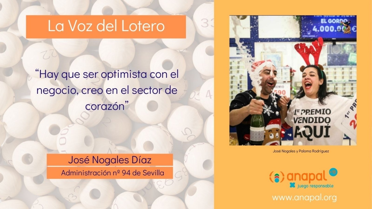 Entrevistamos a José Nogales Díaz, de Loterías ‘El Atrapa Sueños’, la administración nº 94 de Sevilla, quien nos habla de su trayectoria como lotero. José Nogales ha entrado recientemente como socio en ANAPAL y también nos cuenta sus sensaciones al respecto.
