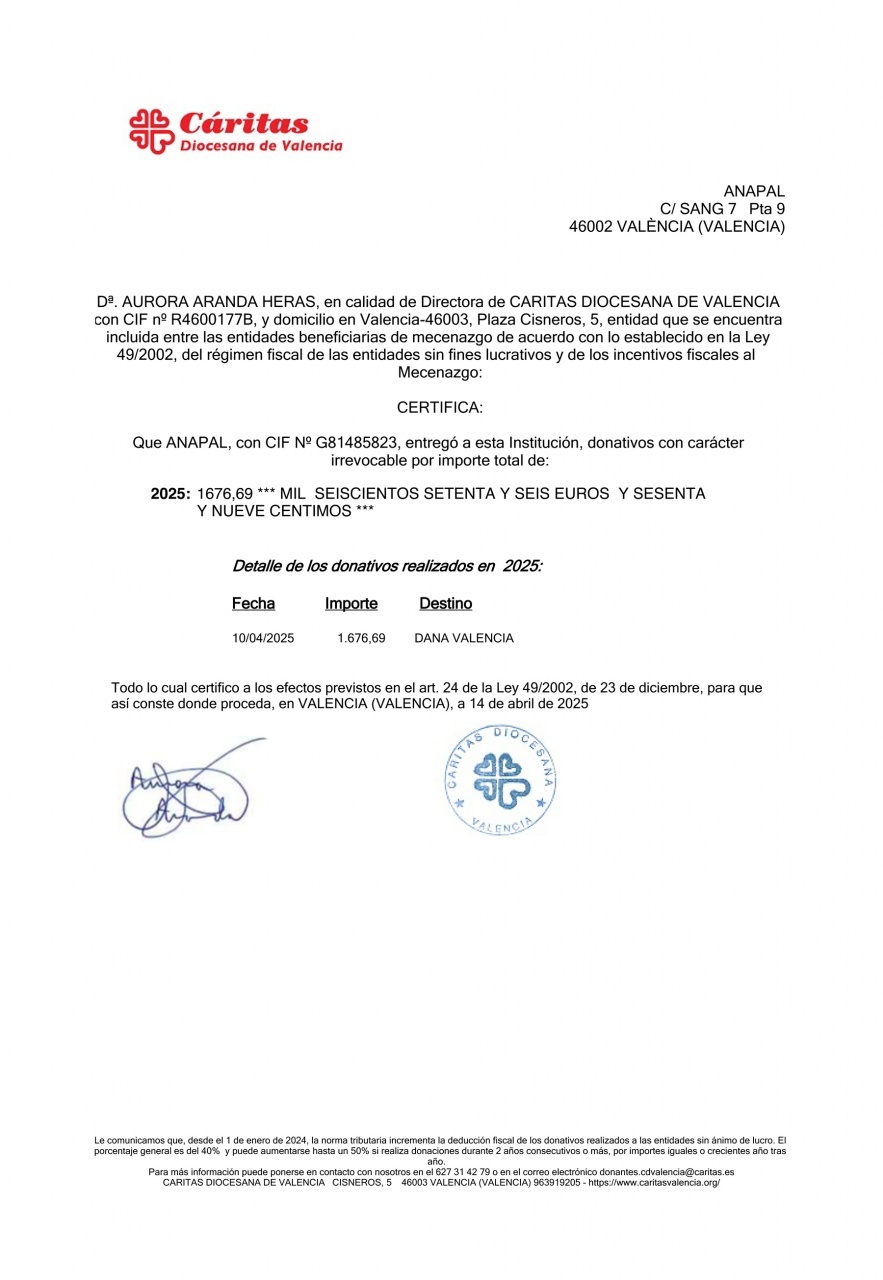 Ver noticia completa: https://blog.anapal.org/anapal-destina-el-remanente-de-las-aportaciones-por-la-dana-en-valencia-a-caritas-diocesana/